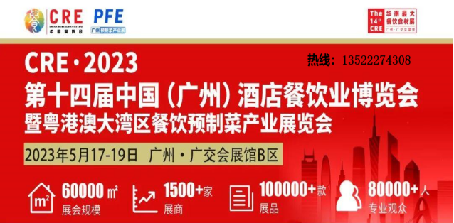 搶占新商機,布局新規劃,采購新產品,前瞻新趨勢,優享新體驗,就在2023年5月17日-19日廣州·廣交會展館B區,2023第十四屆中國(廣州)酒店餐飲業博覽會!2023餐飲業年度盛會,歡迎您的報名參與!