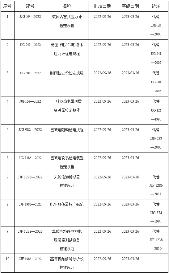 近日,市場監管總局發布2022年第32號公告,批準《液體活塞式壓力計檢定規程》等24項國家計量技術規范發布實施。