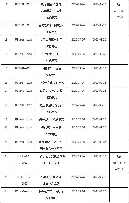 計量技術規范是在科學實驗的基礎上形成的技術文件,是開展測量活動的技術規則和依據,包括計量檢定系統表、計量檢定規程、計量校準規范、計量器具型式評價大綱等。本次發布的計量技術規范中,有15項校準規范、6項檢定規程、1項技術規范和2項計量檢測規則,涵蓋壓力計、電能表、氣密檢漏儀、大氣數據測試儀、電子測量儀器等多種儀器儀表。