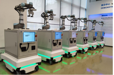 在中德院培訓中心,UR機械臂與MiR100機器人緊密協作,流暢地完成每個站點的裝卸工作和物料運輸。高度靈活,不受地點和工作空間的限制,可提高適應性和效率。復合協作機器人協同安全操作,可以在動態環境中與工人順利配合工作。