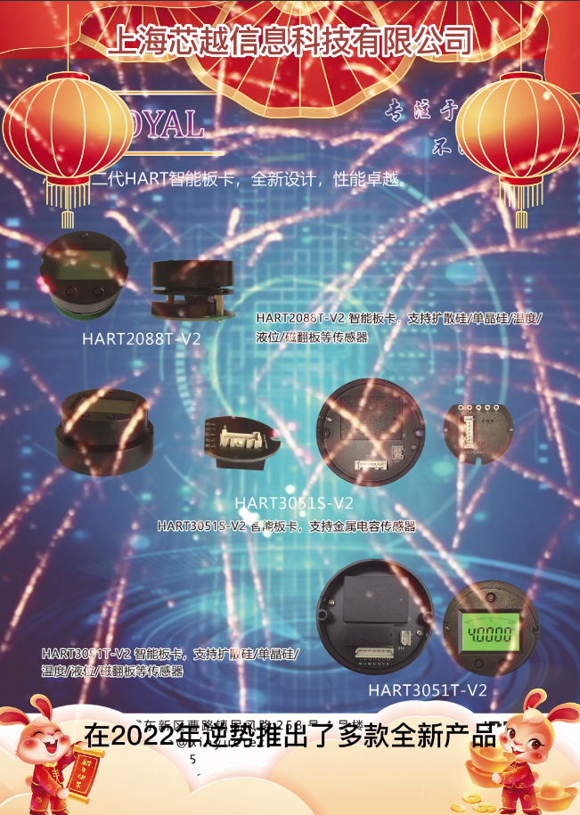 我們不負時光對我們的期待,乘風破浪。發(fā)展多年,在業(yè)內位居領先地位的芯越變送器板卡,在2022年逆勢推出了多款全新產品第二代HART智能板卡,全新設計性能卓越。上海芯越以國際水準,本土設計為客戶研發(fā)和升級的壓力變送器板卡,溫度、液位等相關變送器模塊產品和自動化校準系統(tǒng)受到用戶的好評!