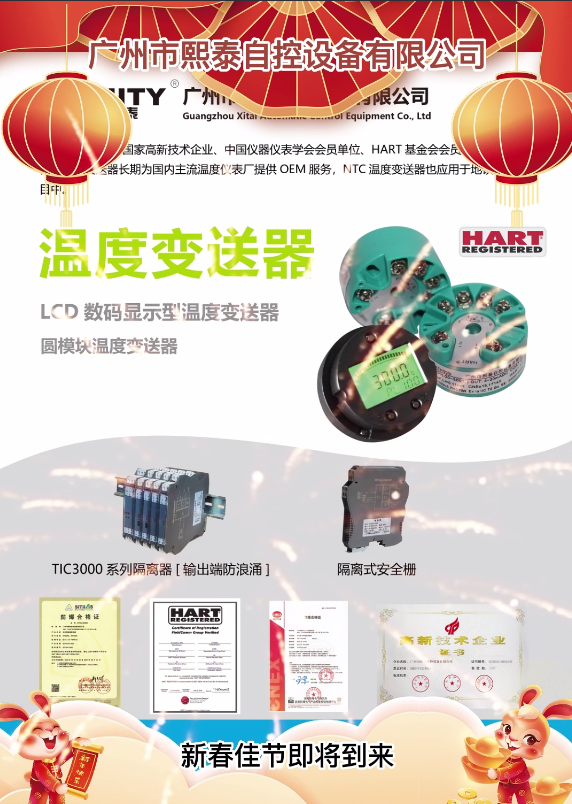 新春佳節即將到來,我謹代表熙泰自控公司向大家致以新春的祝福和誠摯的問候!熙泰自控作為研發生產 智能溫度變送器 信號變換器 安全柵 的國家高新技術企業,“研發與制造穩定可靠的控制產品”為企業使命的專業化公司,向關心、支持和幫助“風雨同舟”發展的各位用戶、社會各界朋友表示衷心的感謝! 2022年,我們凝心聚力、奮斗不息,公司蓬勃發展。其中智能溫度變送器長期為國內主流溫度儀表廠提供OEM服務,NTC溫度變送器也應用于地鐵及高鐵項目中。