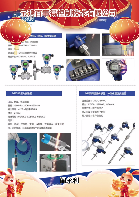 百事得控制全系列DPI系列壓力、差壓、液位、溫度sensor,一體化差壓流量計、ph計、電導(dǎo)率儀、數(shù)顯控制儀等產(chǎn)品全面符合GMP食品安全標(biāo)準(zhǔn),為保障食品,藥品,啤酒保駕護(hù)航。