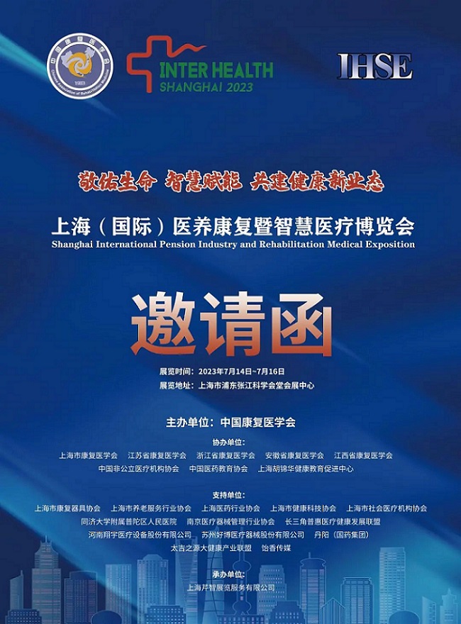 大健康、大趨勢、大事業。今天的健康產業站在了一個新的歷史大健康起點上。今天的康復,正在成為各類人才大有可為、大有作為的康復熱土,為助力打造與城市地位相匹配,中國一流、世界先進的全民健康體系,由中國康復醫學會主辦,上海市康復醫學會、江蘇省康復醫學會、浙江省康復醫學會、安徽省康復醫學會、江西省康復醫學會聯合協辦的“2023上海(國際)醫養康復暨智慧醫療博覽會” (以 下簡稱“上海康博會”) 將于2023年7月14日-16日在上海市張江科學會堂會展中心舉辦。博覽會以“敬佑生命 智慧賦能 共建健康新業態”為主題,全面會聚國 內外知名專家,圍繞“智慧醫療、醫養康復、智慧養老、體育健康” 等產業推動長三角地區生命健康技術進一步融合,形成高質量發展的區域引領。