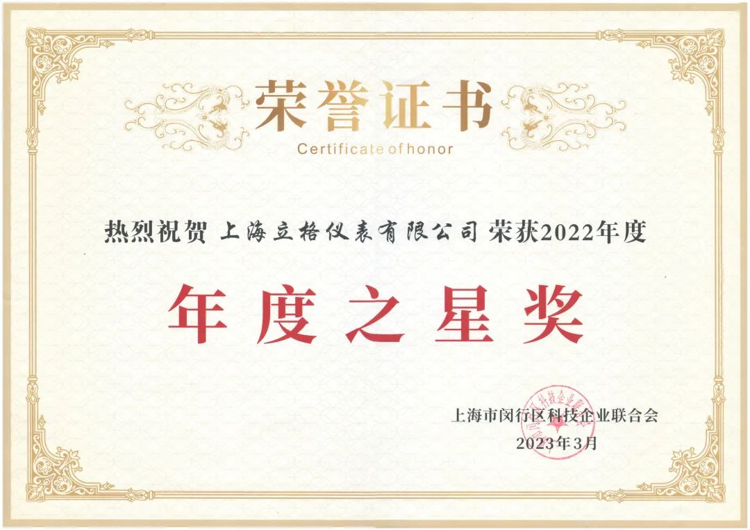 日前,上海市閔行區科技企業聯合會主辦的科技企業盛典隆重舉行,以表彰科技企業取得長足發展,鼓勵獲獎企業繼往開來,創新性及高成長性再創華章。立格儀表憑借強大的自主研發創新能力和智能制造綜合實力,榮獲“2022年度之星獎”殊榮。
