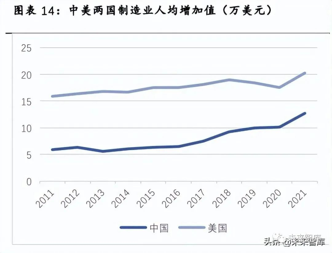 我國制造業人均增加值與美國仍有差距,未來依然有增長空間。從數據來看,我國制造業人均增加值 2021年為12.7 萬美元,而美國為20.3萬美元,制造業依然有增長空間。而與此同時,我國就業人口受教育程度不斷提高,2021年全國就業人口中大學本科比例超過10%,大學就業人口逐漸成為就業市場主力,在此其情況下,工程師紅利逐漸顯現。在雙重因素的驅動下,我國制造業自動化轉型鑄就了基礎。此外,考慮疫情影響已經逐步消退,制造業前景有望改善,對投資自動化產線和設備的需求有望提升,整體自動化水平或將快速提升。