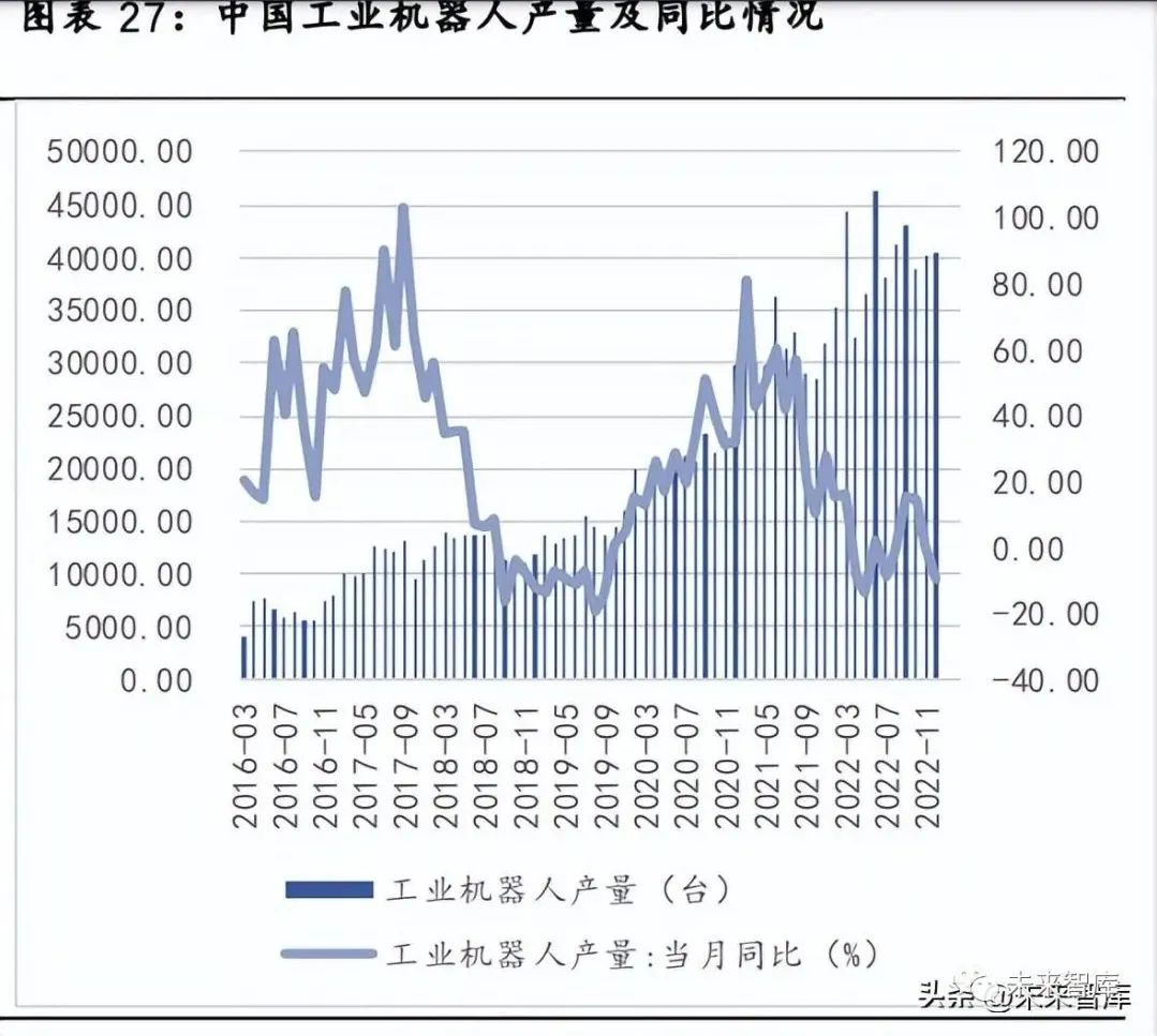 機床一般應用在傳統制造業上,與傳統制造業投資較為相關,而工業機器人與先進制造業投資 較為相關,因此可以通過兩者數據來反應當期工控產品需求情況。從目前數據來看,受疫情影 響,機床類產品產量表現較差,工業機器人 22 年大多數月份仍處于正增長。雖然近幾年工業 機器人市場經歷短期波動,但中長期依然有望向好,MIR 預測 2023 年中國工業機器人增速或 將提升至 12%左右,未來幾年仍將保持 2 位數增長。我們認為,在產業結構調整趨勢下,先進 制造業有望成為未來發展重點。
