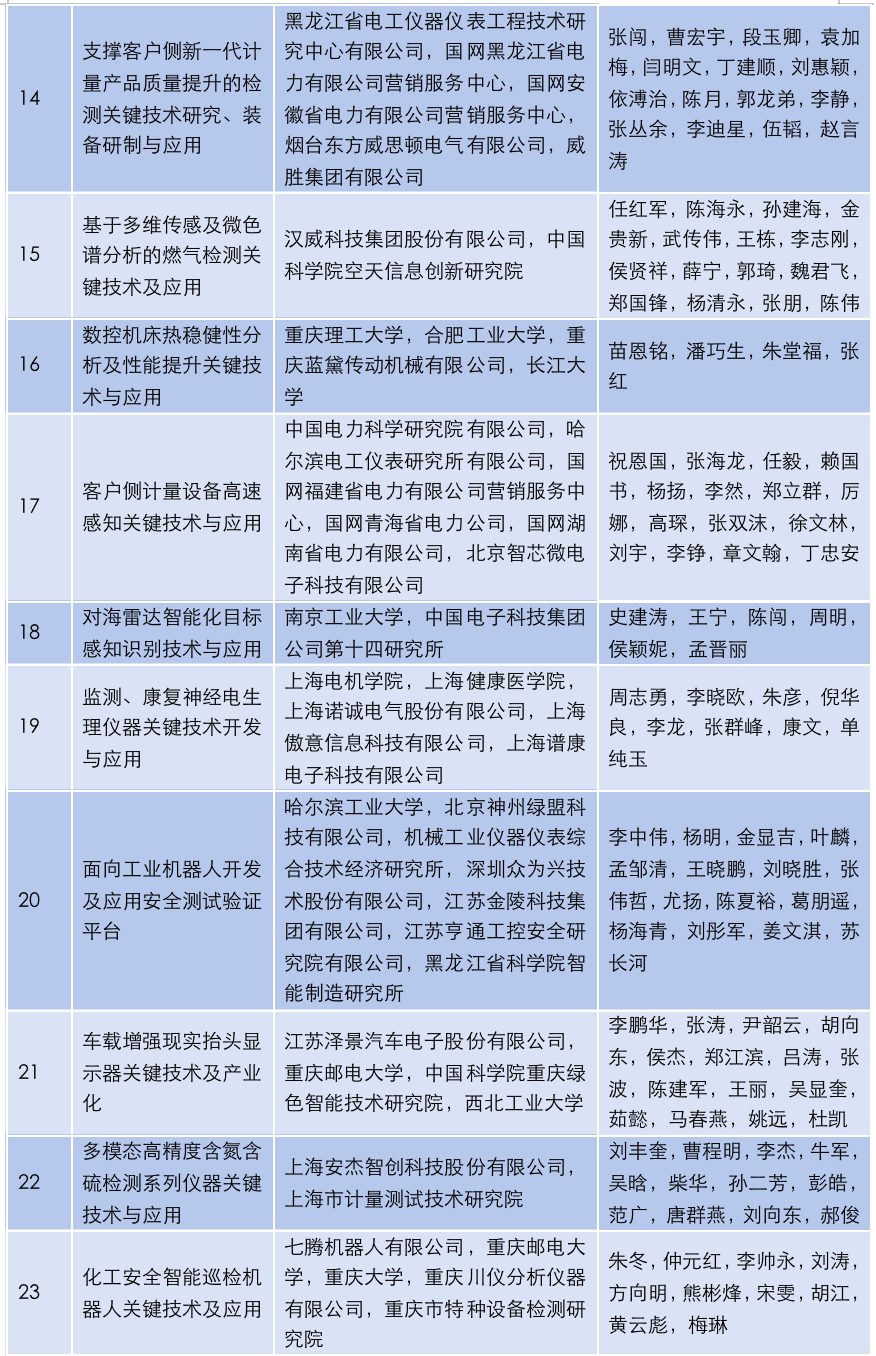 中國儀器儀表學會科學技術獎評審委員會按照《中國儀器儀表學會科學技術獎勵辦法》之規定對2023年科學技術獎申報項目進行了嚴格認真的形式審查、初評、會評,共評選出一等獎16項,其中科技進步獎10項,技術發明獎6項;二等獎44項,其中科技進步獎40項,技術發明獎4項;三等獎19項,其中科技進步獎18項,技術發明獎1項;青年科技人才獎6人;科技進步獎(創新團隊)2個。現對獲獎名單公布如下: