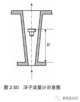 轉(zhuǎn)子流量計又名浮子流量計或面積流量計。浮子流量計具有結(jié)構(gòu)簡單,使用維護(hù)方便,對儀表前后直管段長度要求不高,壓力損失小且恒定,測量范圍比較寬,工作可靠且線性刻度,可測氣體、蒸汽和液體的流量,適用性廣等特點。浮子流量計主要由一根自下向上擴大的垂直錐管和一只可以沿著錐管的軸向自由移動的浮子組成,如圖 2.50 所示。當(dāng)被測流體自錐管下端流入流量計時,由于流體的作用,浮子上下端面產(chǎn)生一差壓,該差壓即為浮子的上升力。當(dāng)差壓值大于浸在流體中浮子的重量時,浮子開始上升。隨著浮子的上升,浮子最大外徑與錐管之間的環(huán)形面積逐漸增大,流體的流速則相應(yīng)下降,作用在浮子上的上升力逐漸減小,直至上升力等于浸在流體中的浮子的重量時,浮子便穩(wěn)定在某一高度上。這時浮子在錐管中的高度與所通過的流量有對應(yīng)的關(guān)系。