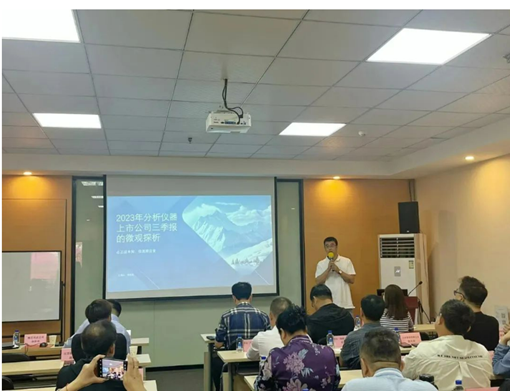 隨后,代理商分會副理事長林欣田作了題為“2023年分析儀器上市公司三季報的微觀探析的分享。他從銷售額、管理與經(jīng)營和供應(yīng)鏈三個方面對分析儀器產(chǎn)業(yè)鏈相關(guān)的部分上市公司進行了深入分析,通過第三季度財報數(shù)據(jù)來探究中國及國際分析儀器行業(yè)市場的發(fā)展情況及未來前景。