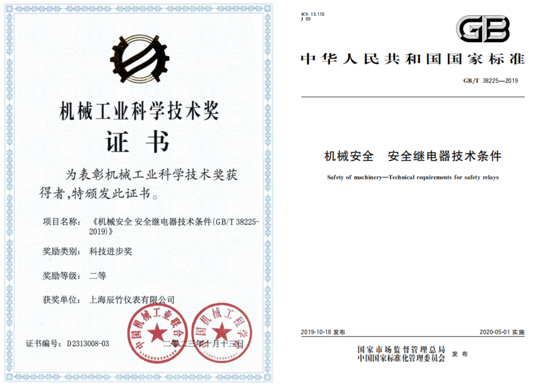 過去國內(nèi)沒有專門針對安全繼電器的標準,其設計主要參照的是基于安全控制回路的安全控制系統(tǒng)相關標準中的要求。然而,這些標準主要側(cè)重于控制回路的搭建,對于安全繼電器的設計并沒有發(fā)揮直接的指導作用,這在某種程度上影響了國內(nèi)安全繼電器的研發(fā)與推廣。 為了彌補這一不足,國內(nèi)相關行業(yè)和標準制定機構(gòu)一直在努力制定專門針對安全繼電器的標準。這樣的標準將更加具體和詳細地規(guī)定安全繼電器的設計、制造和檢驗等方面的要求,為國內(nèi)安全繼電器的研發(fā)和推廣提供更有力的指導。 上海辰竹起草編制了《機械安全 安全繼電器技術(shù)條件 (GB/T 38225-2019)》的國家標準,該標準規(guī)定了安全繼電器的技術(shù)要求、安全功能、安全性能等方面的分析與確認,對安全繼電器的應用與技術(shù)條件進行了詳細的解釋說明。這一標準的制定一方面填補了國內(nèi)在安全繼電器方面的標準空白,另一方面也推動了更多國內(nèi)制造商設計開發(fā)符合國內(nèi)外要求的安全繼電器。 《機械安全 安全繼電器技術(shù)條件 (GB/T 38225-2019)》榮獲中國機械工業(yè)聯(lián)合會、中國機械工程學會授予的機械工業(yè)科學技術(shù)二等獎,即是對這一國家標準提高國內(nèi)安全繼電器的設計水平和質(zhì)量的肯定,也是對其促進國內(nèi)制造商在安全繼電器領域的研發(fā)與發(fā)展給予的鼓勵,上海辰竹將繼續(xù)在安全繼電器與安全控制回路領域深耕,堅持技術(shù)創(chuàng)新,不斷用優(yōu)質(zhì)的產(chǎn)品讓自動化更安全! 福利送上! 來電咨詢安全繼電器:021-64360668 并通報暗號“上海辰竹起草標準獲獎” 可獲得機械安全海報與機械安全應用手冊一份 時間截止至:2023年11月30日 00:00 關于中國機械工業(yè)科學技術(shù)獎: 為更好地貫徹《國家科學技術(shù)獎勵條例》和組織社會力量支持我國的科學技術(shù)事業(yè),進一步調(diào)動機械工業(yè)廣大科技人員的積極性和創(chuàng)造性,促使科技更好地與經(jīng)濟建設相結(jié)合,加快高新技術(shù)和產(chǎn)品的推廣,促進機械工業(yè)科技進步與振興,經(jīng)國家科學技術(shù)部批準,面向全國機械行業(yè)的綜合性科技獎項。 關于上海辰竹: 上海辰竹儀表有限公司主營產(chǎn)品有安全柵、隔離器、電涌保護器、安全繼電器、智能IO等,應用在各類工業(yè)安全領域,是一家集技術(shù)研究、產(chǎn)品開發(fā)、制造、銷售和服務的綜合性企業(yè),是工信部專精特新小巨人企業(yè)(第二批)、工信部儀器儀表行業(yè)“兩化融合”標桿企業(yè)、上海市科技小巨人企業(yè),獲上海品牌認證、上海市五一勞動獎狀企業(yè)稱號。