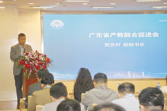 廣東省產(chǎn)教融合促進會專家委員會歐陽農(nóng)躍執(zhí)行主任、廣東省產(chǎn)教融合促進會樊員軒副秘書長,廣州市產(chǎn)教融合協(xié)會陳婷秘書長,華南農(nóng)業(yè)大學食品學院雷紅濤院長、深圳職業(yè)技術(shù)大學食品學院岳振峰主任、廣東達元綠洲食品安全科技股份有限公司石松董事長,以及來自政府、企業(yè)、行業(yè)協(xié)會、科研院所、教育機構(gòu)、媒體等各界代表等100多人參加了會議,大會由廣東達元綠洲食品安全科技股份有限公司殷立明副總經(jīng)理主持。