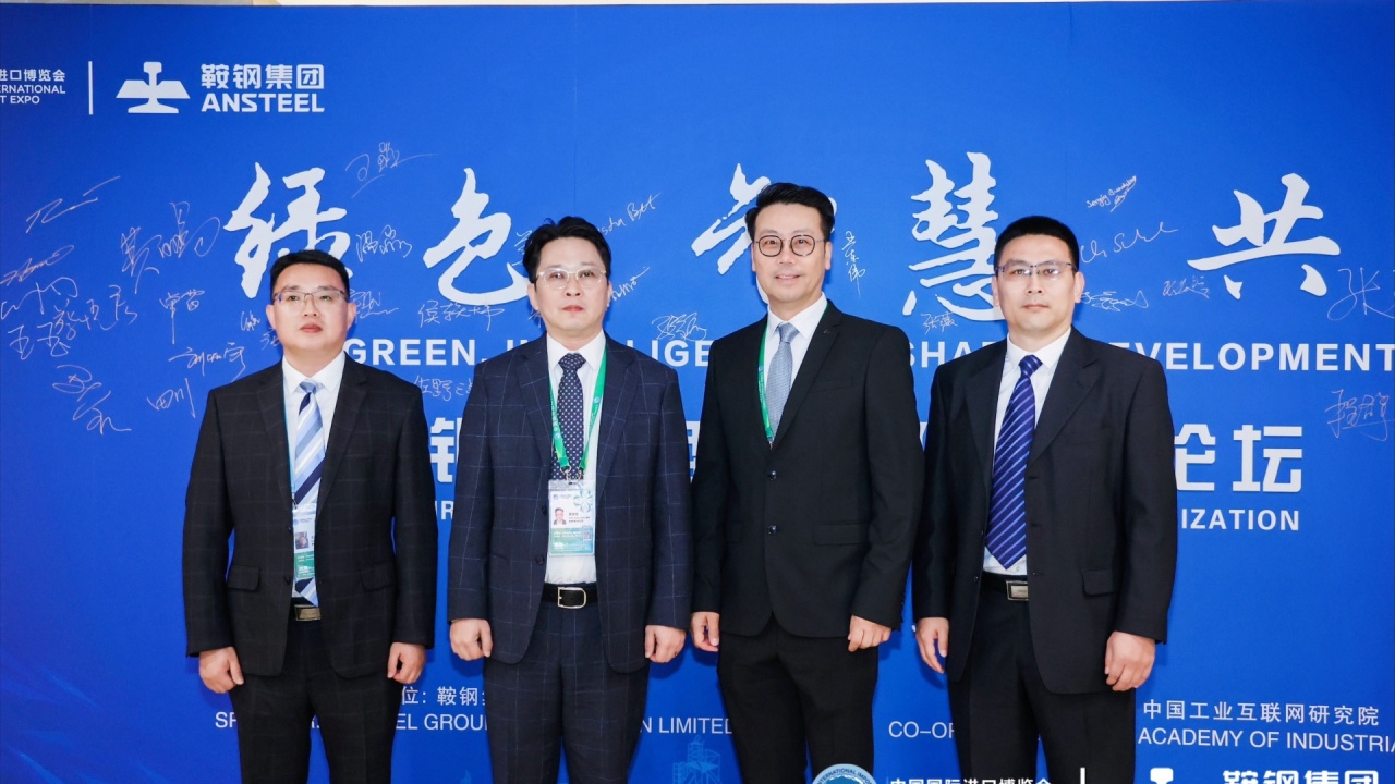 從左至右,博世力士樂(lè)中國(guó)銷售工程師王玉先生,博世力士樂(lè)中國(guó)銷售副總裁黃智恒先生,博世力士樂(lè)東亞區(qū)總裁、博世力士樂(lè)中國(guó)總經(jīng)理劉火偉先生,博世力士樂(lè)中國(guó)北京分公司首席區(qū)域經(jīng)理王昱先生,出席本次論壇及簽約儀式。(圖源:中國(guó)國(guó)際進(jìn)口博覽會(huì),鞍鋼集團(tuán))
