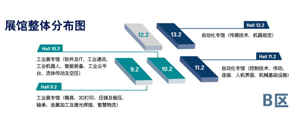 11.2號館和13.2號館設為自動化專館,11.2號館以控制技術、傳動、連接、人機界面及機械基礎設施等領域產品展示為主,13.2號館將重點展示前沿的傳感技術及機器視覺等產品領域。