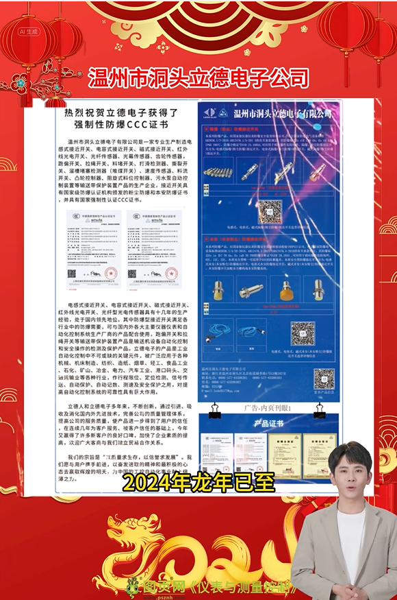 新春佳節,辭舊迎新,2024年龍年已至,值此美好時刻,我謹代表溫州市洞頭立德電子公司,向您致以最誠摯的祝福和新年的問候!