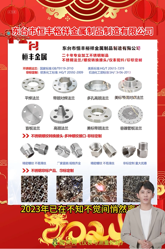 在新的2024年里,恒豐裕祥金屬制品將進一步深化“用戶至上”的市場觀和“質量是企業(yè)的生命”的質量觀,以“創(chuàng)新發(fā)展品牌”,以“精品塑造名牌”,繼續(xù)與各界同仁和廣大用戶精誠合作,攜手并進。恒豐裕祥金屬制品以二十年專業(yè)加工不銹鋼制品專注,在不銹法蘭、螺紋轉換接頭、儀表配件、非標定制產品上為儀表廠家提供優(yōu)秀配件,堅持“以人為本,以精品回報社會”,為中國儀表行業(yè)的振興與騰飛做出自己應有的貢獻,實現與儀表生產企業(yè)互利共贏的美好局面。