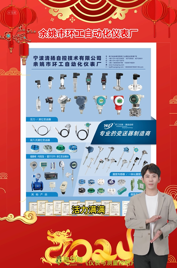 新的一年、新的希望、新的耕耘,環工自動化20多年變送器產品生產經驗,服務超5000多家用戶。我們的專注與努力會給大家帶來全新的蛻變和不一樣的變送器產品及自動化儀表應用解決方案等體驗。值此新春佳節之際,環工自動化儀表祝環工自動化的伙伴們以及幫助環工自動化的員工伙伴們在新的一年里闔家歡樂,步步高升,幸福美滿,龍年大吉!
