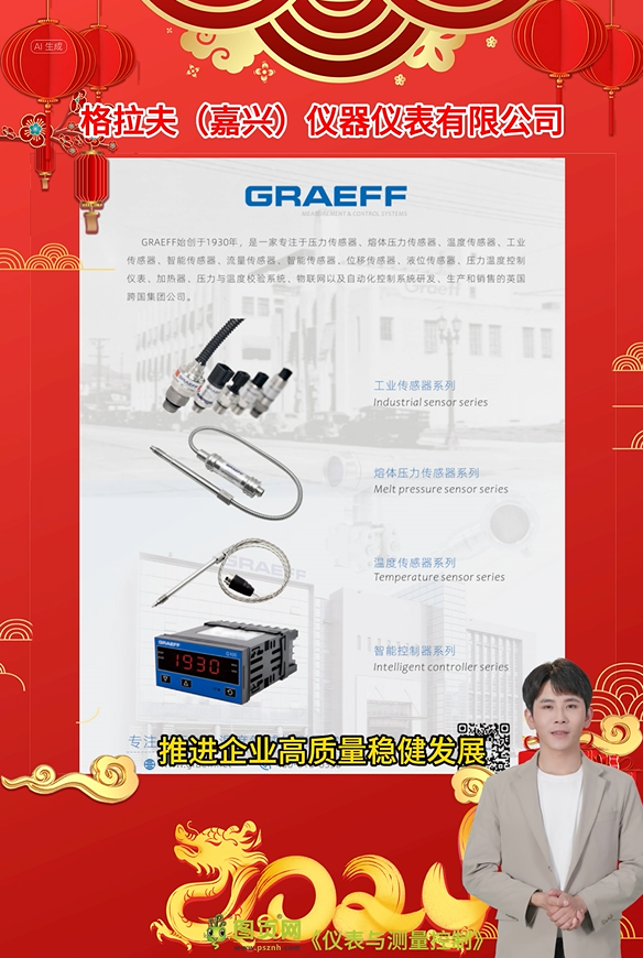 GRAEFF(格拉夫)是一家專注于熔體壓力傳感器、溫度傳感器、工業傳感器、智能傳感器、智能控制器以及自動化控制系統研發、生產和銷售的英國跨國集團公司。展望2024年,GRAEFF(格拉夫)將緊緊圍繞國家發展戰略,抓住汽車電動化、環保儀器儀表,工業自動化和制造數字化的發展機遇,積極承擔中國“智能制造”的責任和使命,堅守匠心,做精做專做強傳感器與測量技術產業,為振興民族經濟,推動中國制造業的高質量發展貢獻智慧和力量。