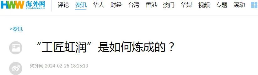 元宵剛過,人民日報海外網等央媒即以《工匠虹潤是如何煉成的》為題,圍繞“‘ 三化合一’鑄就虹潤工匠文化”“‘三化融合’錘煉虹潤智能制造”“工匠虹潤氣勢長虹”三個部分,報道了虹潤創新發展的不平凡歷程,令虹潤人倍受鼓舞,倍增信心。好雨知時節,春風助我行。在新征程中虹潤人定有新作為!