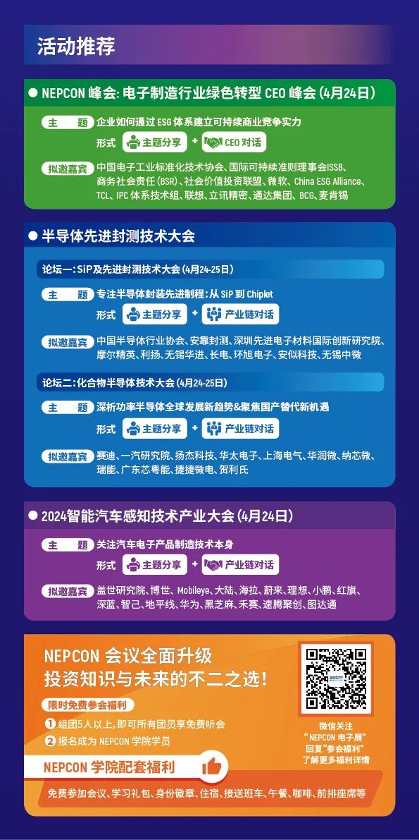 NEPCON China 2024將為各位業界精英提供一個匯聚智慧、交流思想、拓展合作機會的優質平臺。在此,我們期待與您一同見證這場行業的盛宴,共同創造電子制造行業的美好未來。
