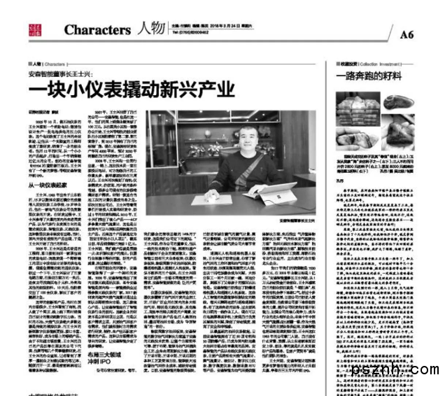 ”安森智能董事長王士興:一塊小儀表撬動新興產業”報道報紙剪影
