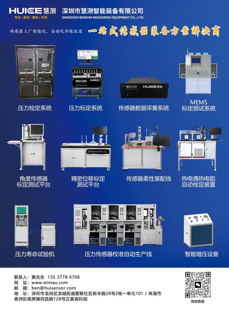本期雜志特別推介了深圳市慧測智能裝備有限公司,作為本期雜志的專業合作伙伴,慧測智能裝備有限公司致力于傳感器產業裝備的研發、生產及銷售,提升傳感器產業的自動化和智能化,助力客戶提高生產效率和質量。公司已研發出多款測試平臺和設備,服務涵蓋PCBA燒錄及功能測試、壓力傳感器標定測試、位移傳感器標定測試、液位傳感器標定測試等多個領域。慧測智能裝備有限公司秉承“為合作伙伴創造價值”的核心價值觀,以誠信、寬容、創新、服務為企業精神,通過自主創新和真誠合作為電子商務及信息服務行業創造價值。