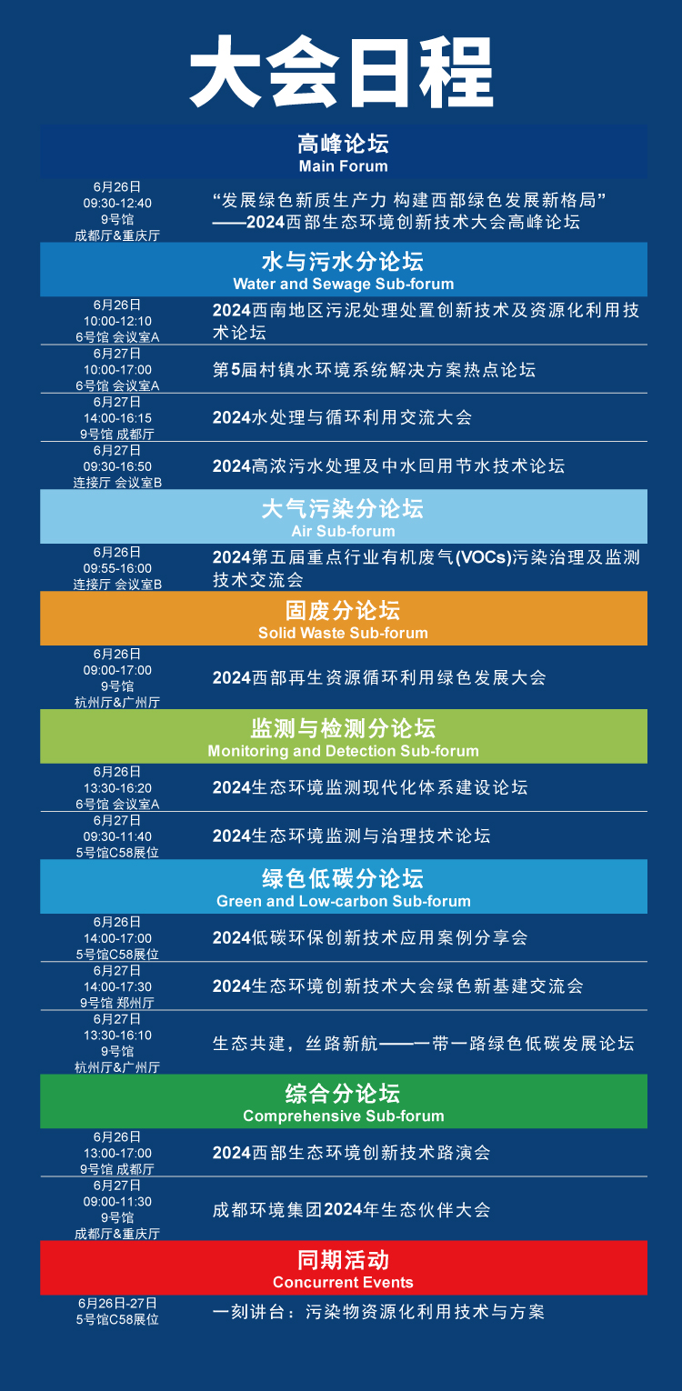 高峰論壇以及各領(lǐng)域分論壇詳細(xì)議程可點擊(6月26-28日,2024生態(tài)環(huán)境創(chuàng)新技術(shù)大會邀您“蓉城”相見 )查看!