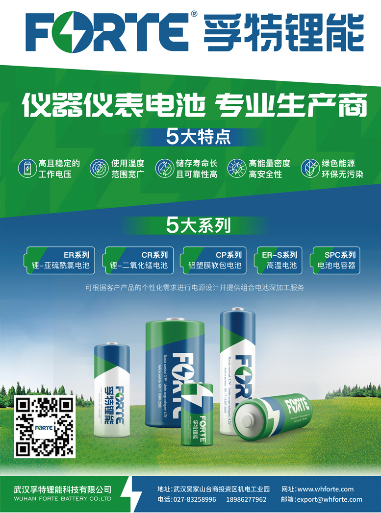 武漢孚特鋰能科技有限公司,前身為武漢孚特電子科技有限公司,成立于2001年,專注于鋰-亞硫酰氯、鋰-二氧化錳等鋰原電池的研發、生產和銷售,是中國鋰原電池的主要供應商。公司的主要產品包括亞酰氯電池(Li-SOCl2 Battery)和二氧化錳電池(Li-MnO2 Battery),廣泛應用于智能IC卡水、電、氣、熱表、便攜式設備、軍事通訊電臺、水下兵器、救生產品和計算機等領域。公司依托強大的技術力量、完善的管理制度和規模化的生產能力,為國內外用戶提供高品質的產品和服務。產品已出口至歐洲、北美、東南亞、中東及港澳臺等地區,并通過了ISO 9001、UN、UL、CE等多項國際認證,符合RoHS指令要求。