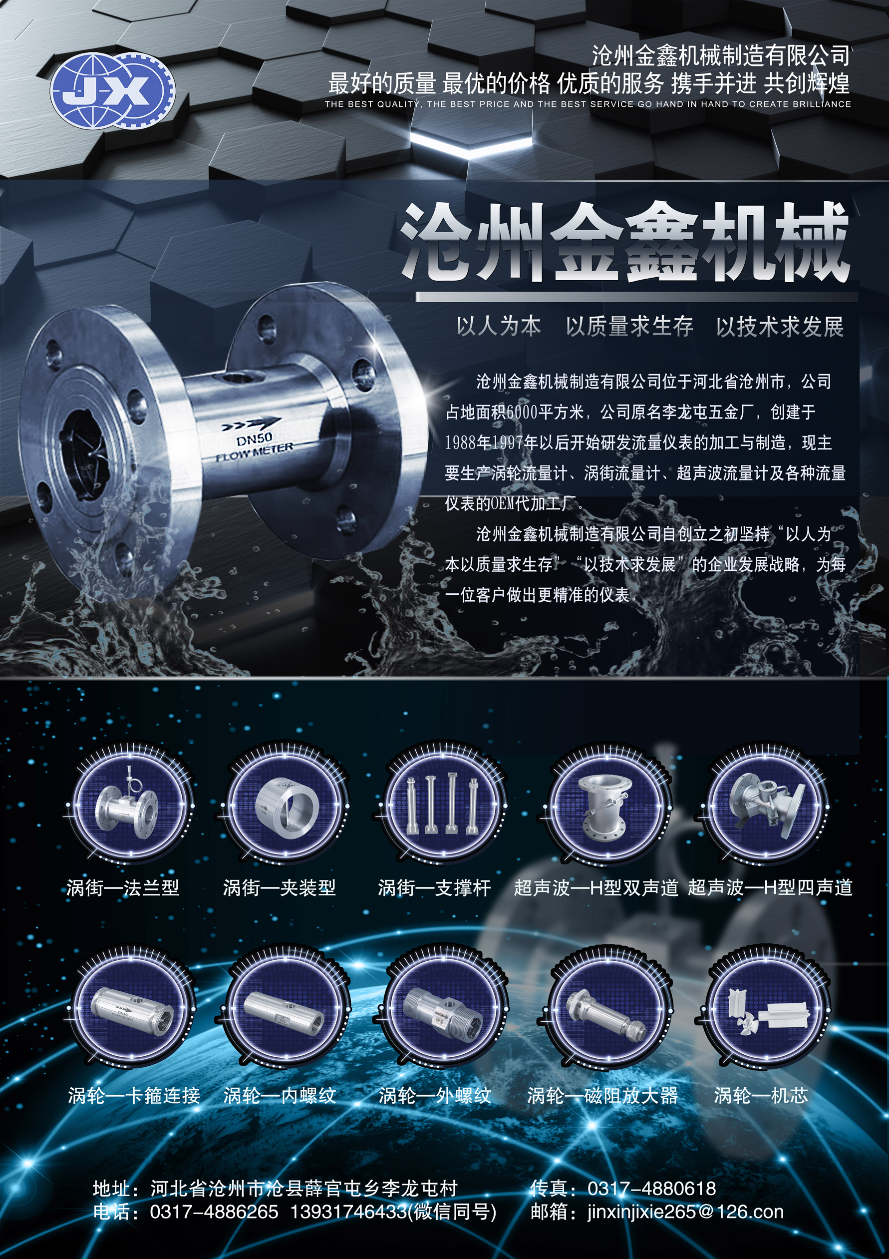 滄州金鑫機械制造有限公司在流量計領域不斷創新,追求卓越。公司秉承“質量第一,客戶至上”的經營理念,嚴格控制每一個生產環節,確保產品的高質量和高精度。憑借其專業的技術和豐富的經驗,滄州金鑫機械制造有限公司不斷提升自身競爭力,逐步在行業內樹立了良好的品牌形象。