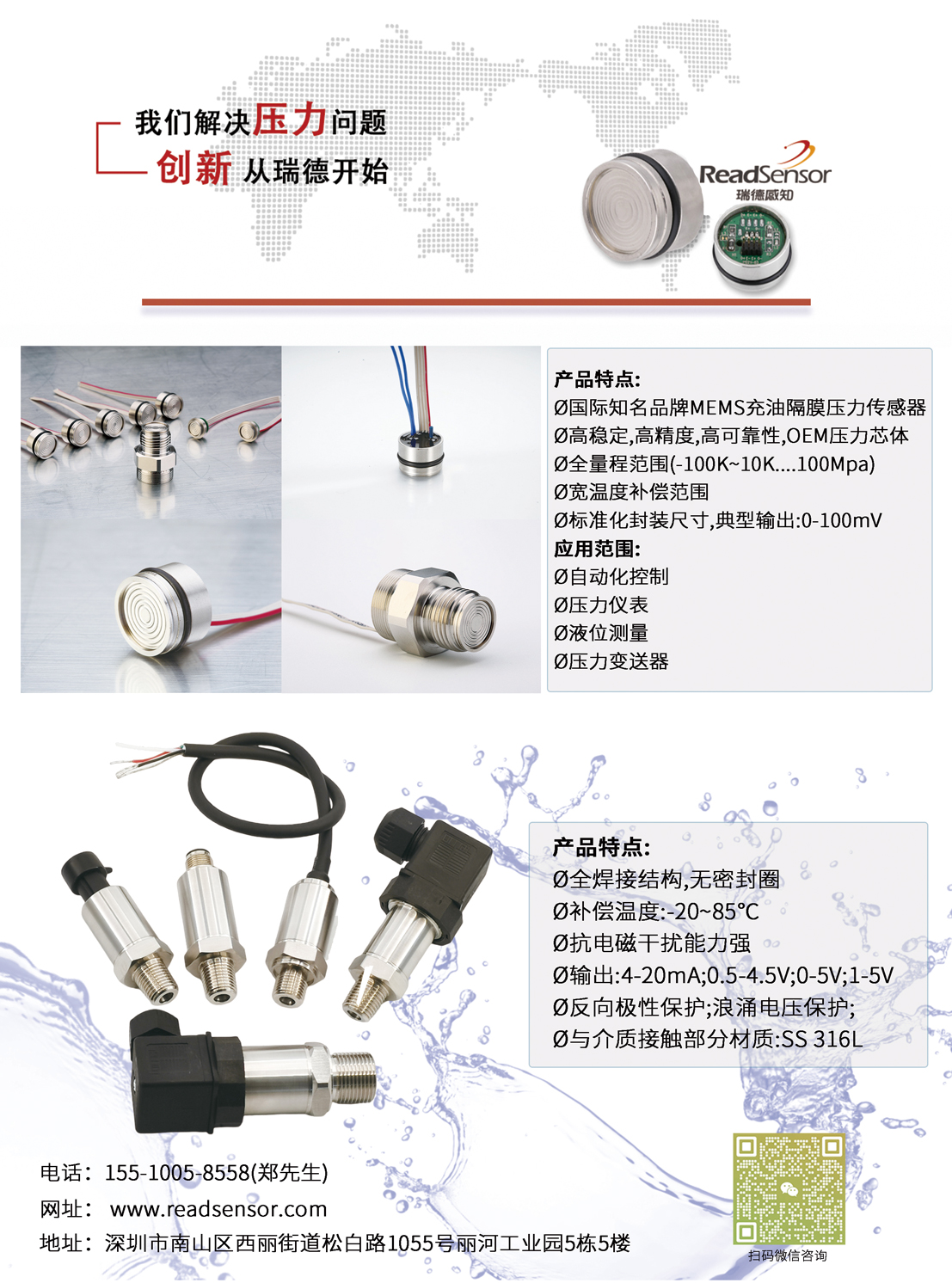 深圳瑞德感知科技有限公司(ReadSensor)作為國內傳感器領域的領軍企業,憑借其在MEMS(擴散硅)和玻璃微熔壓力芯體領域的卓越技術,已經成為行業內的標桿。公司成立于2013年,作為國家高新技術企業,瑞德感知科技專注于壓力傳感器和變送器的研發和生產,致力于為全球市場提供最具性價比的產品。公司在創新方面表現尤為突出,擁有多項專利技術,并且在設計、制造到測試的全流程中實現了高度自動化。核心工序均在10萬級凈化間內完成,保證了產品的高質量和一致性。同時,瑞德感知科技嚴格篩選供應鏈合作伙伴,核心零件和關鍵設備均選自國際知名的業界翹楚,確保了產品的卓越性能。
