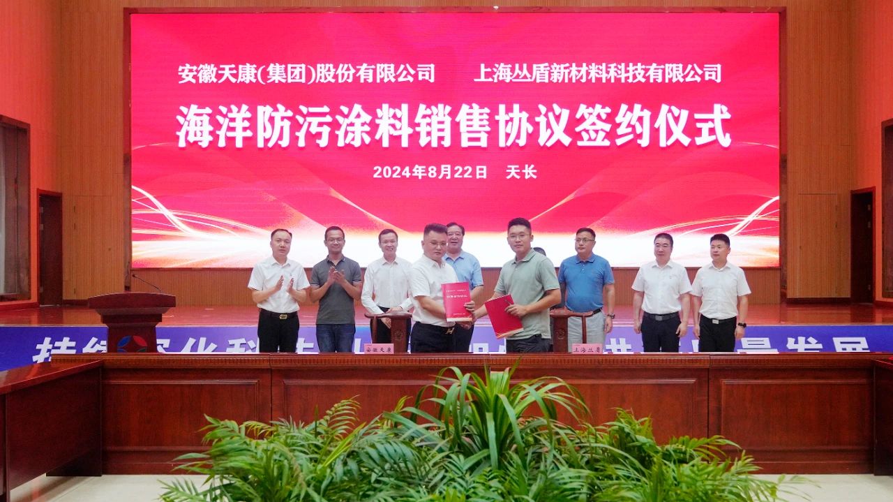 儀式上,安徽天康集團總經理毛文章與上海叢盾新材料科技有限公司總經理劉霖代表雙方簽訂戰略合作協議書,與會領導共同見證了這一重要時刻。