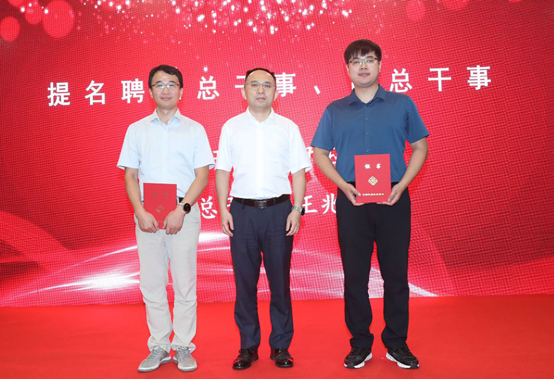 第七屆委員會主任委員陳青松向總干事尹玉剛、副總干事王兆剛頒發(fā)聘書