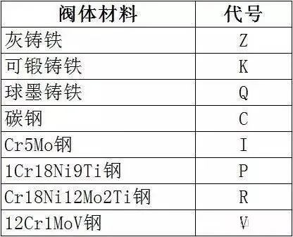 第五單元是閥座密封面或襯里材料代號,用漢語拼音字母表示: