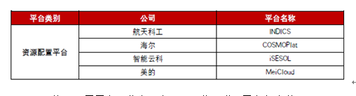 資源配置平臺一覽表(來源:工業互聯網平臺白皮書)