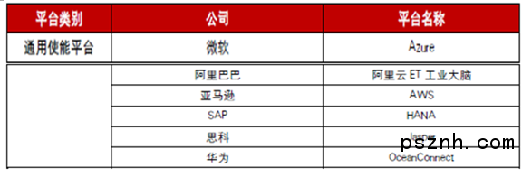 通用使能平臺主要提供云計算、物聯網、大數據的基礎性、通用性服務,主要由ICT 企業提供。其中部分平臺側重于云服務的數據計算及存儲,如微軟的Azure、SAP 的HANA、亞馬遜的AWS以及我國的阿里云、騰訊云等,部分平臺側重于物聯網的設備連接管理,如思科的Jasper、華為的OceanConnect 等。這類平臺為資產優化及資源配置型工業互聯網提供技術支撐,如GE 的Predix 就部署于微軟的Azure 平臺,此外,通用使能平臺還廣泛應用于金融、娛樂、生活服務等各行業。