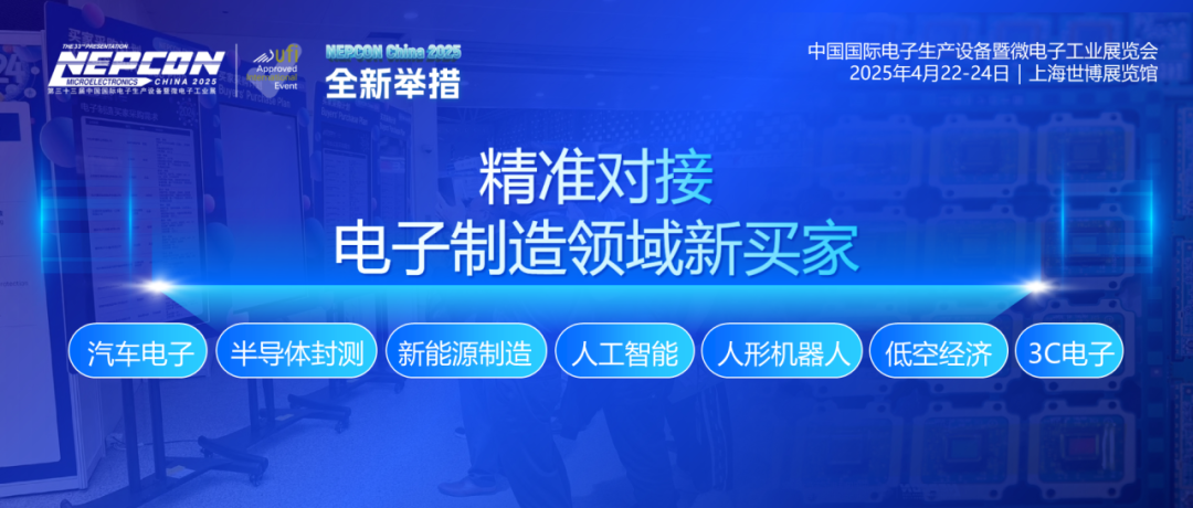 2025年4月22日至24日,第三十三屆中國國際電子生產設備暨微電子工業展(以下簡稱NEPCON China 2025)將在上海世博展覽館拉開大幕,屆時預計來自全球超500個先進電路板組裝解決方案供應商品牌將齊聚上海,通過“展覽展示+會議活動+商貿配對”形式,與優質電子制造新資源深度接洽,高效開展新業務,發現行業新網絡,拓展業務新商機!