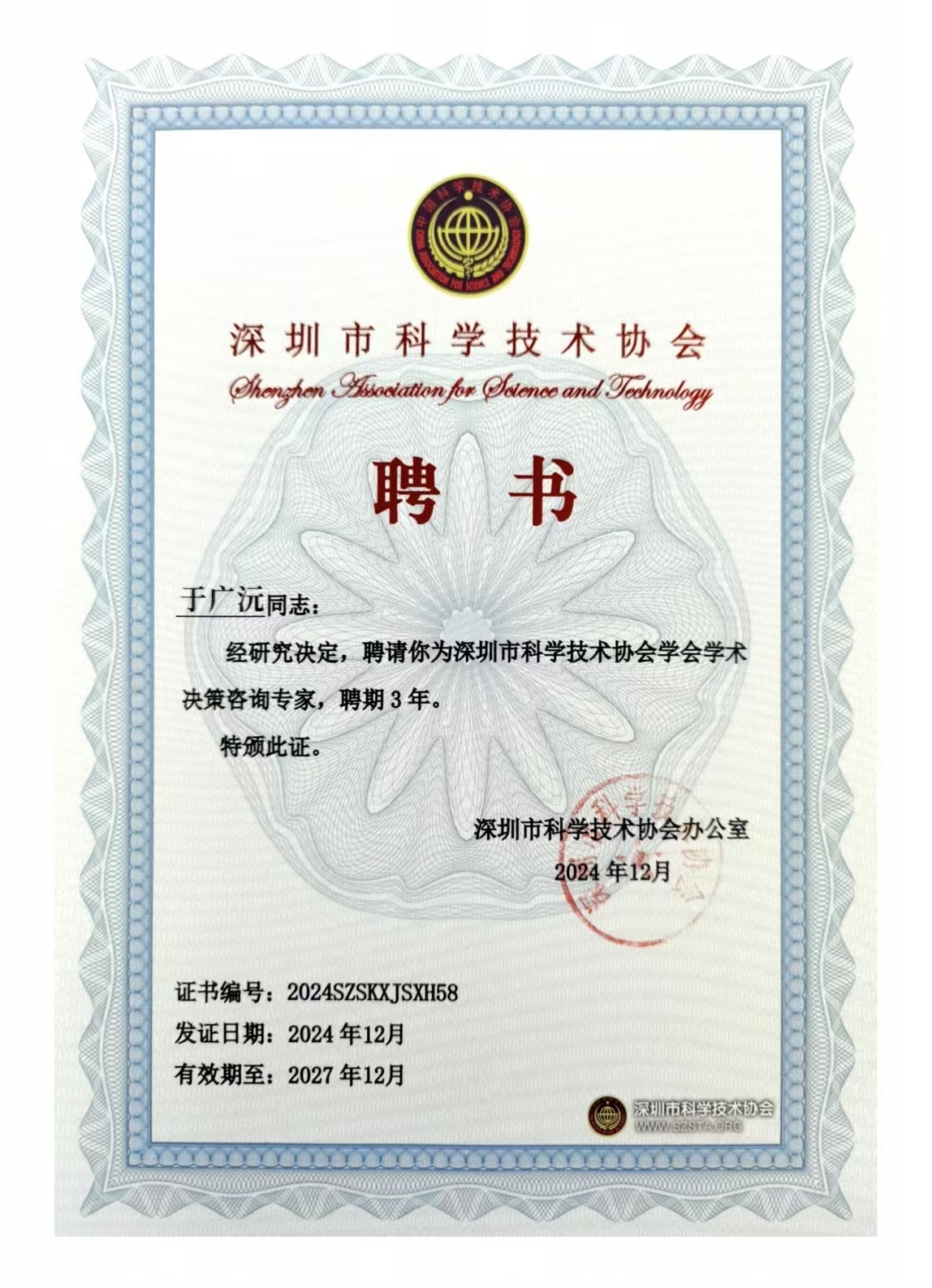 近日,深圳市科學技術協會正式聘請深圳市順源科技有限公司總經理于廣沅為學會學術決策咨詢專家,聘期三年。這一任命不僅是對于廣沅個人在科技創新領域的卓越貢獻的認可,也是對順源科技多年來在智能傳感器與儀器儀表行業中所取得成就的高度肯定。