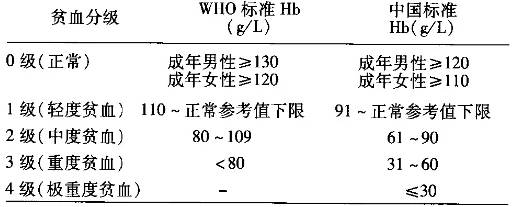 表1 WHO與中國貧血診斷標準對比(單位:g/L)