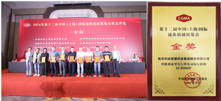 會上,科遠智慧S系列-DIAMOND智能調速直行程電動執行機構憑借在流體機械領域智能驅動控制的卓越產品力,榮獲 “2024 年第十二屆中國(上海)國際流體機械展覽會(CFME)產品金獎”,受到業界廣泛關注。