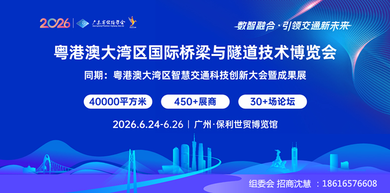 當粵港澳大灣區的橋隧工程持續織密“交通網”,當智慧建造、數字運維成為產業升級核心引擎,一場覆蓋全鏈條、鏈接全球資源的行業盛會即將登場!2026年6月24-26日,粵港澳大灣區(廣州)國際橋梁與隧道技術展覽會(同期舉辦:粵港澳大灣區智慧交通科技創新大會暨成果展),將在廣州保利世貿展館盛大啟幕,現招商通道火熱開啟,誠邀全球橋隧人共赴高質量發展之約!