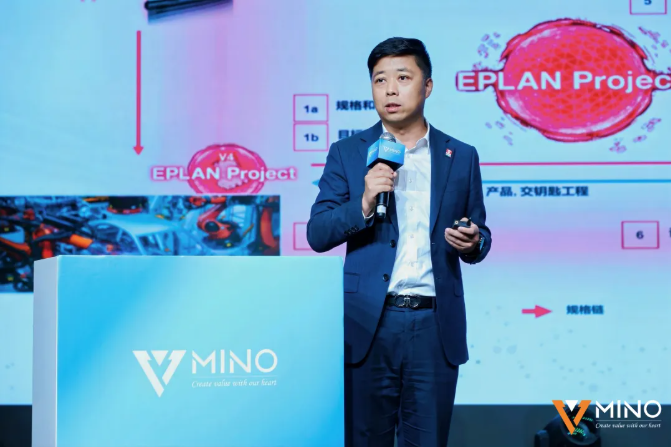 易盼軟件(上海)有限公司(Eplan)大中華區副總裁吳愛國帶來主題分享《Eplan助力汽車工業數字化轉型》。他認為,制造企業進入數字化轉型關鍵階段,用戶需要打造機電一體化“大集成”的數字化平臺為支撐的數字化工廠,這就需要企業具備跨學科的流程規劃能力。