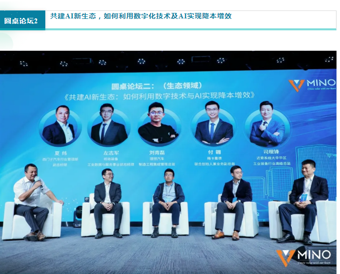 在下午舉行的圓桌論壇環節,在西門子汽車行業管理部副總經理夏緯的主持下,明珞工業數據與服務事業部總經理左志軍、理想汽車制造工程集成管理總監劉青磊、達索系統大中華區工業裝備行業高級總監司現鋒、梅卡曼德-聯合創始人兼業務副總裁付翱圍繞《共建AI新生態:如何利用數字化技術與AI實現降本增效》展開熱議。