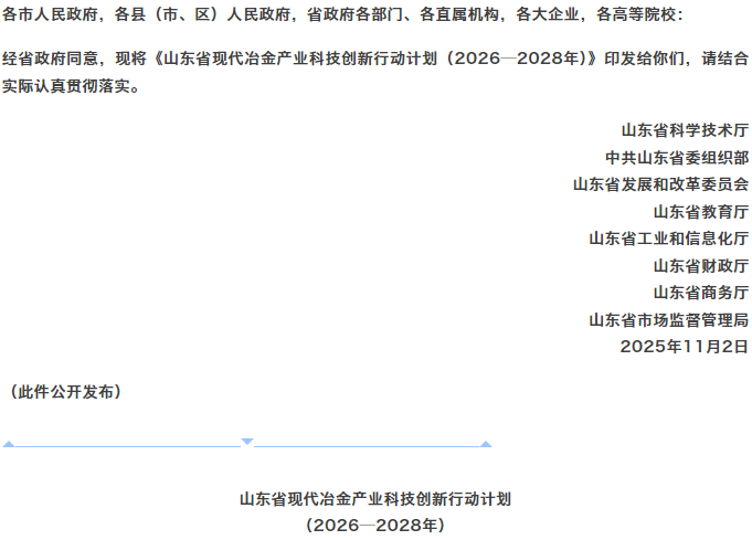關于印發《山東省現代冶金產業科技創新行動計劃(2026—2028年)》的通知