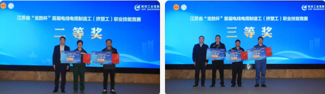經過激烈比拼,寶勝股份劉仁波榮獲個人一等獎,江南電纜胡前莉、恒峰線纜劉關銀榮獲個人二等獎,上上電纜賈琪,寶勝股份曹騰飛、林劍榮獲個人三等獎,江南電纜蔣俊濤,中天科技裝備電纜李存金,寶勝股份朱國輝,上上電纜袁傳琴、張坤,江揚電纜張志軍等6人榮獲競賽優勝獎,寶勝股份榮獲團體一等獎,恒峰線纜、中天科技裝備電纜榮獲團體二等獎,江南電纜、中煤電纜、長飛海洋榮獲團體三等獎,上上電纜、華亞電纜、遠東電纜、中超電纜、江揚電纜、明珠電纜、通鼎互聯、遠大電纜等代表隊榮獲優秀組織獎。張偉民、張宏文、尤春華等3名裁判榮獲優秀裁判獎。