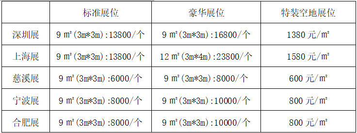 1、展覽收費:(雙開口標準展位加收10%