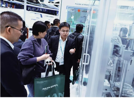 本次參展產(chǎn)品,涵蓋小型斷路器檢測生產(chǎn)線與柱上極柱裝配單元兩大矩陣,將低壓元器件的精密工藝與智能裝備自動(dòng)化系統(tǒng)的高效協(xié)同完美呈現(xiàn)。 從元器件精準(zhǔn)分揀、自動(dòng)組裝到成品檢測,全流程實(shí)現(xiàn)自動(dòng)化化生產(chǎn),提升生產(chǎn)效率的同時(shí),有效控制了產(chǎn)品不良率。通過技術(shù)創(chuàng)新重新定義行業(yè)生產(chǎn)標(biāo)準(zhǔn),助力制造業(yè)向智能化、綠色化轉(zhuǎn)型。來自世界各地的制造企業(yè)代表紛紛駐足交流,表達(dá)合作意向。