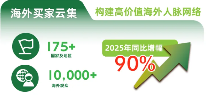2026年,展會(huì)海外勢(shì)能將再升級(jí),我們預(yù)計(jì)精準(zhǔn)邀約11,000+海外的專(zhuān)業(yè)買(mǎi)家,覆蓋全球核心市場(chǎng):美國(guó)、加拿大、意大利、波蘭、法國(guó)、德國(guó)、西班牙、白俄羅斯、英國(guó)、俄羅斯、韓國(guó)、日本、新加坡、馬來(lái)西亞、泰國(guó)、越南、印度尼西亞、菲律賓、柬埔寨、印度、巴基斯坦、阿拉伯聯(lián)合酋長(zhǎng)國(guó)、沙特阿拉伯等國(guó)家及地區(qū)買(mǎi)家,讓企業(yè)與海外買(mǎi)家面對(duì)面,高效打通全球化市場(chǎng)渠道。