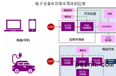 功率半導體是電子裝置中電能轉換與電路控制的核心,主要用途包括變頻、整流、變壓、功率放大、功率控制 等,因此廣泛應用于移動通訊、消費電子、新能源交通等領域。功率半導體可以分為功率分立器件和功率IC兩大類,功率IC相當于SOC,屬于模擬IC的范疇。我們以下討論的功率半導體特指功率半導體分立式器件,主要包括二極管、晶閘管、BJT、MOSFET、IGBT及模塊這幾類,功率模塊相當于SIP(System In a Package,系統級封裝)。根據Yole的統計數據,在2017全球功率分立器件和模塊市場中,二極管約占20%,MOSFET約占40%,IGBT及功率模塊約占30%,三者合計占比達到90%。