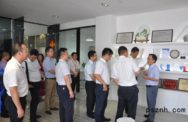 經過榮譽展示區時,總經理李繼維先生為考察團細數億維自動化取得的榮譽。億維自動化是國家級高新技術企業及雙軟認證企業,在深圳和武漢分別設立了研發中心,研發人員超過公司總人數的35%,公司每年的研發費用超過銷售額的10%,所有產品都具有完整的自主知識產權和核心技術,取得多項發明專利和實用新型專利。每年都會收到各大行業協會的入會邀請以及行業媒體頒發的榮譽證書,”2017制造示范獎“、”2016新銳企業獎“、”2015發展突破獎“......丁書記對億維多年來在工業自動化行業取得的成績表示祝賀并給予高度評價。
