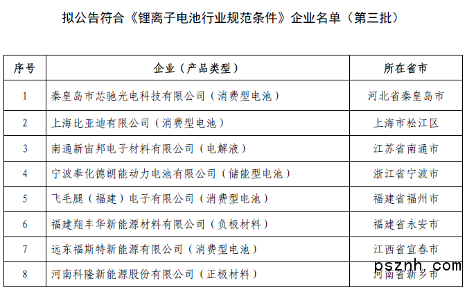 附件:擬公告符合《鋰離子電池行業規范條件》企業名單(第三批)